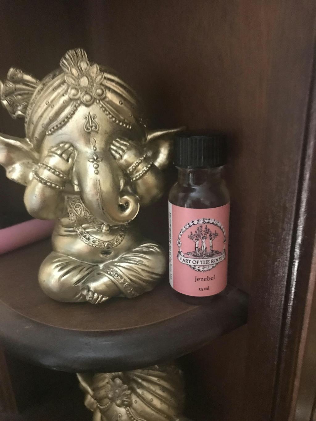 Jezebel Oil can be worn on the body, placed in the bath, and anointed onto jewelry or talismans. Rub it on your hand, dab it onto contracts, or other financial paperwork. It can be anointed onto business cards or simply dabbed on a cotton ball and carried in one's purse. Put a few drops in the heel of your shoes while going out on a date or when attending social functions.